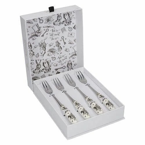 The set of four pastry forks are presented in a luxuriously illustrated matching gift box, with a ‘pull me’ tab to let the adventure begin.