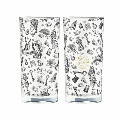Alice In Wonderland Set Of 2 High Ball Glasses