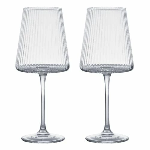 Each wine glass from this set of two, boasts a contemporary shaped bowl with rounded corners and a fine optic.