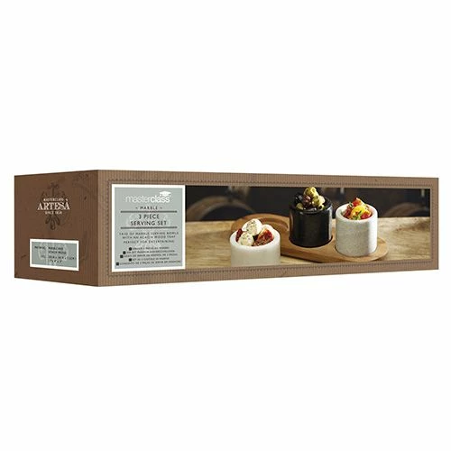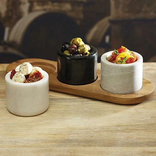 The trio set is beautifully designed and is ideal for serving gourmet foods.
