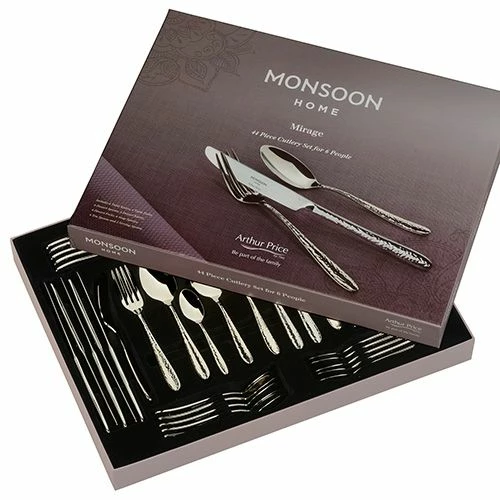 Arthur Price Monsoon Mirage Cutlery, leading high street fashion brand Monsoon has teamed up with leading family run cutlery manufacture Arthur Price to create the Monsoon Mirage range of cutlery.