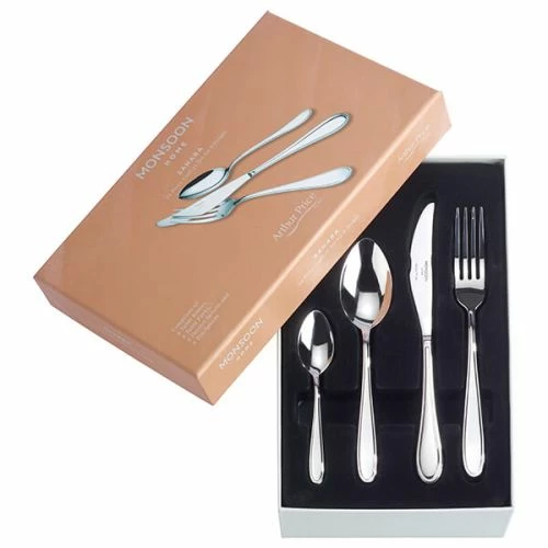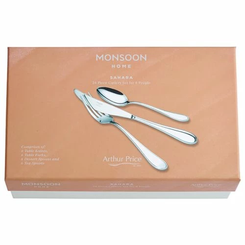 Made from 18/10 stainless steel this Arthur Price Monsoon Sahara 24 Piece Set comprises 6x table knives, 6x table forks, 6x dessert spoons and 6x teaspoons.