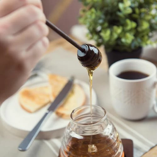 The Artisan Street honey pot is made from glass in the shape of a beehive and sits perfectly on top of an acacia wooden board. The honey pot can be filled with your favourite honey and comes complete with an acacia wood honey dipper with a dark stain finish.