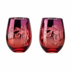 The Artland Bloom DOF Tumblers are a set of 2 glasses decorated in a chrome orange and fuschia and embossed with a delicate floral design to add elegance and grace.