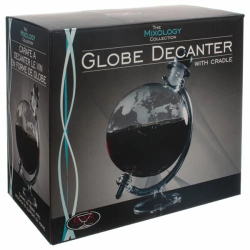 Approximate globe decanter dimensions: H18cm x W14cm x D14cm. Capacity: 750ml.