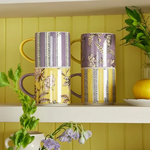 The Cath Kidston Wisteria Set of 4 Stacking Mugs bring a colourful flair to your crockery collection with their purple and yellow contrast hues and floral and striped designs, with some hidden treasures within the flowers of various animals. Their stackable design makes storage super easy and convenient, and their beautifully unique design captures the classic Cath Kidston theme.