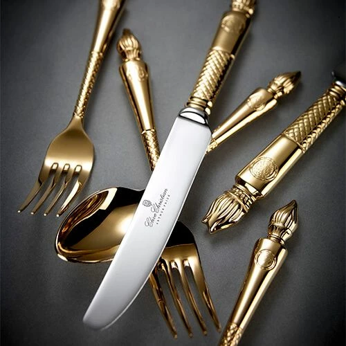 Made from high quality 18/10 stainless steel and featuring a 24 carat gold plated finish with elegant embossing for a luxury finish to your table setting for that very special occasion.