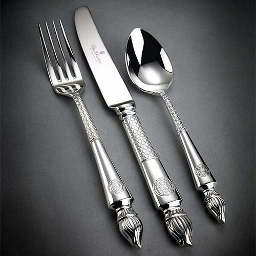 The table knife is made from high quality 18/10 stainless steel and features a silver plated finish with elegant embossing for a luxury finish to your table setting for that very special occasion.