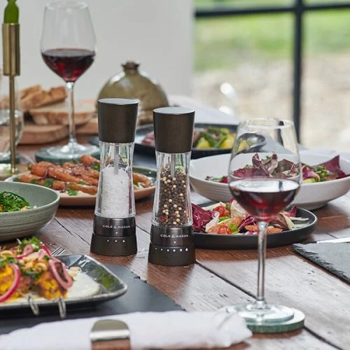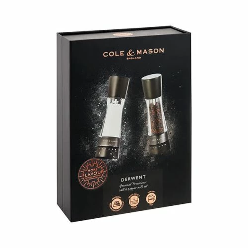 The Cole & Mason Derwent Black Wood Gift Set includes a pepper mill and a salt mill. Stylish and sleek and looks great as part of your table setting. Perfect for adding freshly ground pepper to your home cooking and meals at the table.
