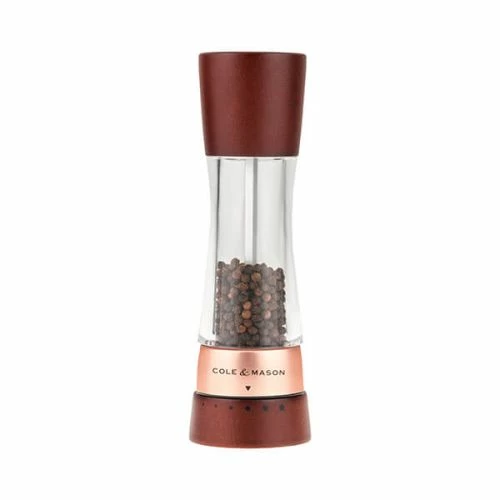 The Cole & Mason Derwent Chestnut Rose Gold Pepper Mill is stylish and sleek and looks great as part of your table setting. Perfect for adding freshly ground pepper to your home cooking and meals at the table.