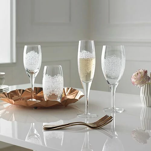 Each of the White Wine Glasses features the delicate silver filigree pattern that gives the range its name.