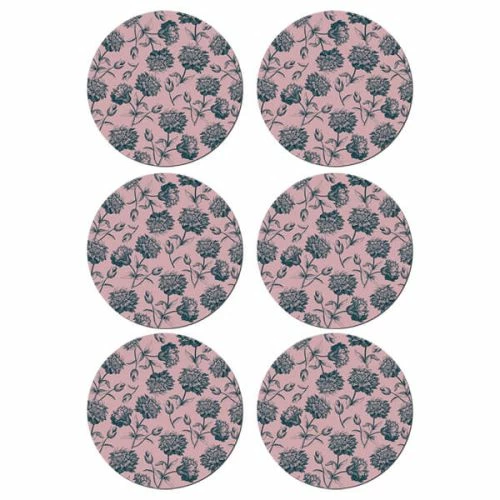 Denby Set Of 6 Rose Engraved Floral Round Placemats
