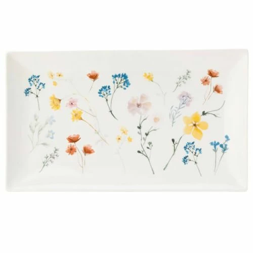 This Pressed Flowers rectangular platter measures 34cm x 20cm and can be teamed with other coordinating items in the collection to complete the Pressed Flowers look.