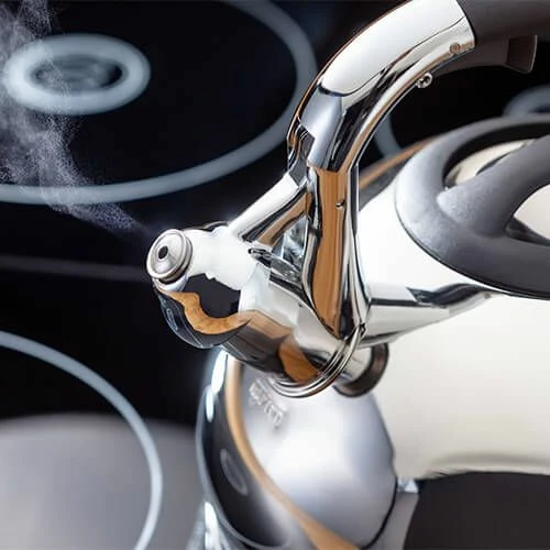The whistle of the kettle raises away from the spout so the boiled water can be poured safely and easily.
