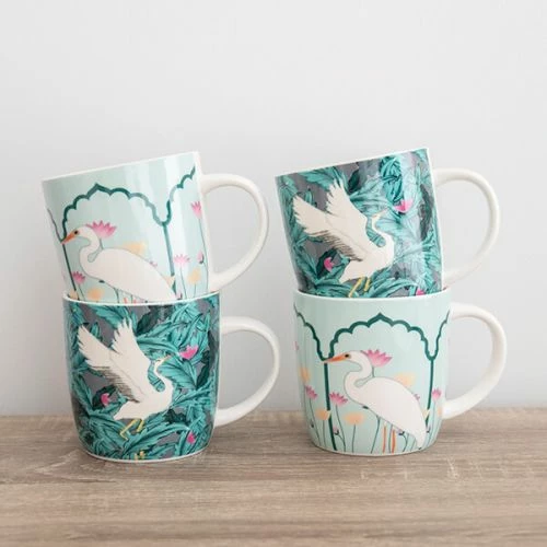 Made from china and with a 425ml capacity, each barrel-shaped mug features a colourful floral illustration featuring a pair of cranes and has an ample handle for a comfortable grip.