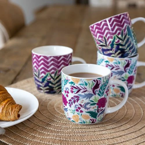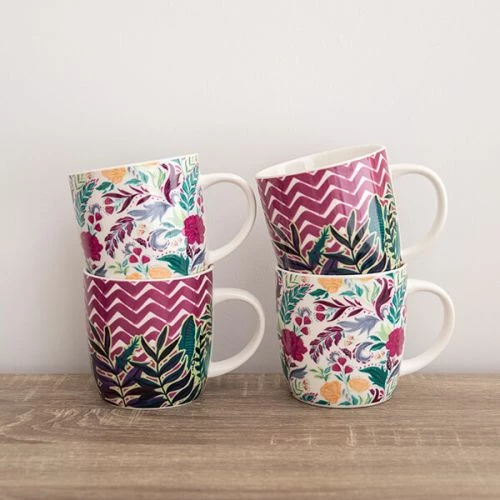 This set of 4 KitchenCraft exotic floral barrel mugs are perfect for tea, coffee or even a hot chocolate.