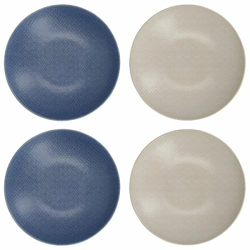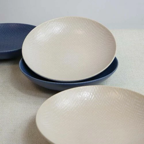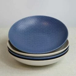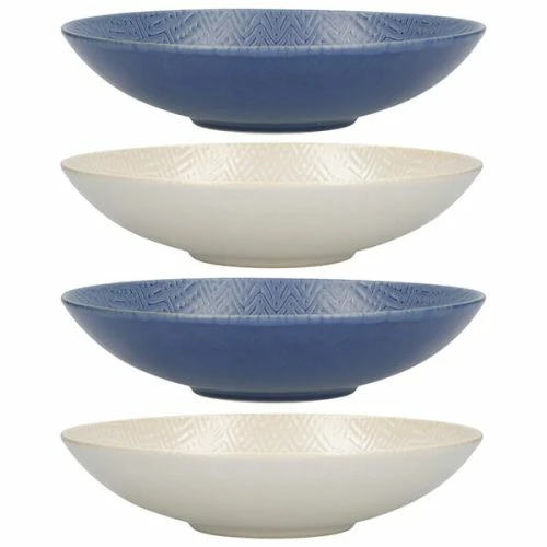 This set of 4 KitchenCraft stoneware embossed blue and cream coupe bowls are perfect for enjoying pasta, rice and noodles at home.