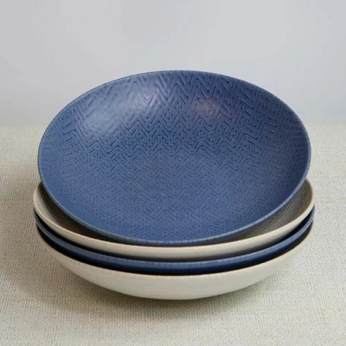 KitchenCraft Blue and Cream Embossed 22cm Stoneware Coupe Bowl Set of 4