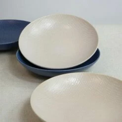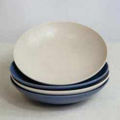 Each of the coupe bowls are 22cm / 8″ diameter and are suitable for heating and warming food in the microwave. The set of 4 blue and cream embossed coupe bowls are dishwasher safe for easy and convenient cleaning.