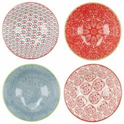 The set of 4 bowls have mix and match designs with a mixture off leaves, flowers are mandalas in a durable ceramic stoneware and gift boxed for a great gift for family and friends.