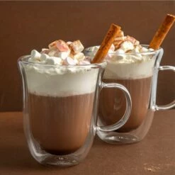 The La Cafetiere set of 2 double walled hot chocolate mugs are perfect for a warming and delicious drink that is kept warmer for longer with the insulated construction.