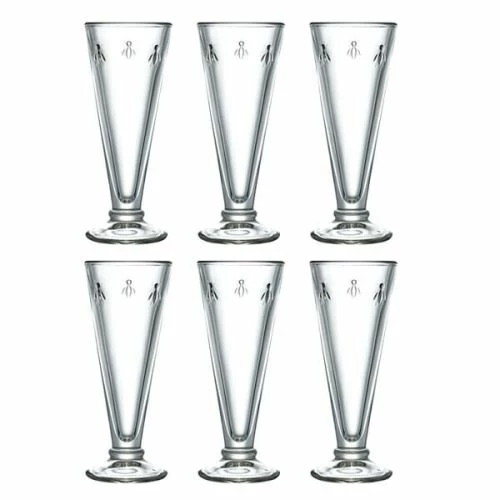 This set of 6 La Rochere Bee Champagne Flutes is perfect for both casual entertaining as well as everyday use. This collection has an artisan antique feel as well as a modern silhouette thanks to the charming bee features.