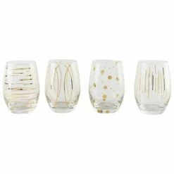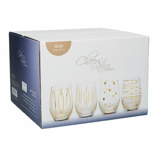 Mikasa Cheers Metallic Gold Set Of 4 Stemless 16.5oz Wine Glasses