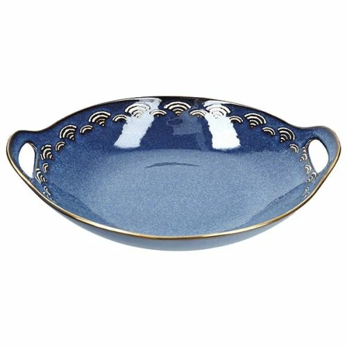 For those who love oriental designs this delightful serving bowl is finished in deep indigo with gold edge detailing and also features the embossed Seigaiha wave pattern, the traditional Japanese sign for good luck, energy and happiness.