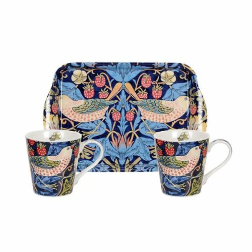 Morris & Co Strawberry Thief Blue Mug & Tray Set
