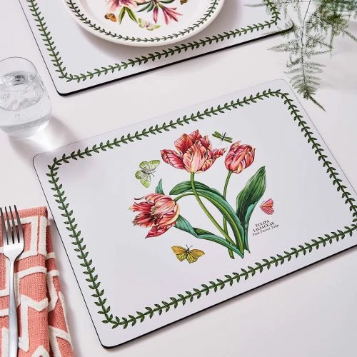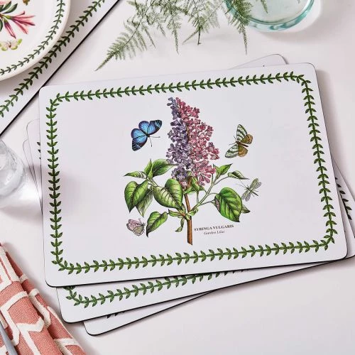 This Portmeirion Botanic Garden Set of 4 Large Placemats all feature a different floral motif on each placemat with the signature green edging.