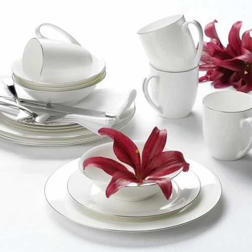 This stylish and modern 16 piece tableware set is designed to suit every dining occasion. Each item features an effortlessly elegant Platinum band.