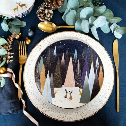 Part of the magical Sara Miller Frosted Pines Collection – from award-wining designer Sara Miller, set in a magical winter forest, featuring treetops glistening with a dusting of snow.