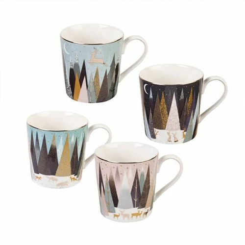 Sara Miller Frosted Pines Collection Set of 4 Mugs
