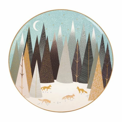 Part of the Sara Miller Frosted Pines Collection, each plate from this set is beautifully adorned with a wintery nature scene.