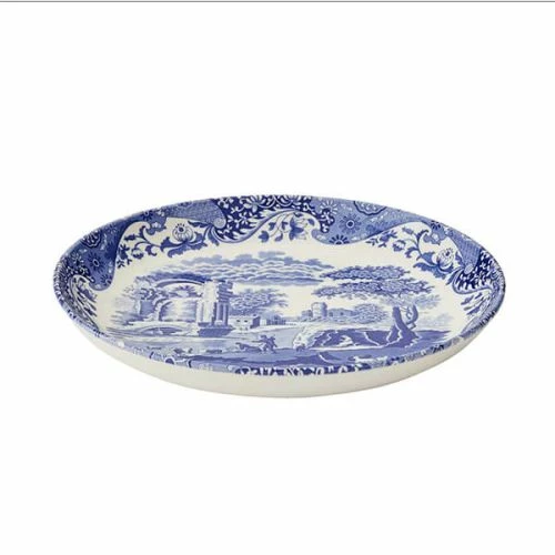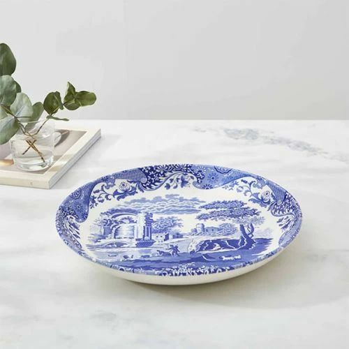 The Spode Blue Italian Pasta Bowl adopts the classic Spode blue and white design in which the brand is renowned for. This bowl has a unique design, capturing a historic scene inspired by the Italian countryside with an Oriental border that dates back to the 18th century.