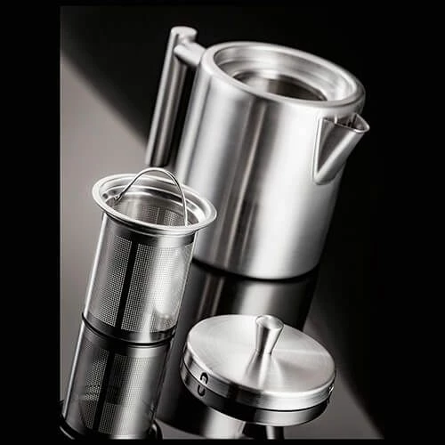 This 600ml stainless steel 3 cup teapot features a removable filter basket for infusing loose tea leaves.
