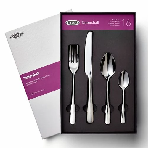 This Stellar Tattershall 16 Piece Cutlery Set is modern in design with a perfect weighted balance.
