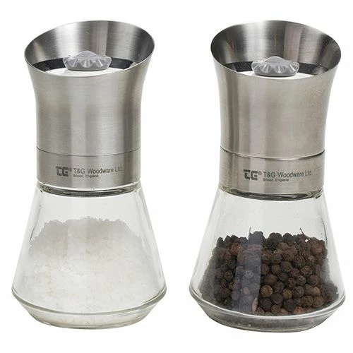 T&G CrushGrind Tip Top Stainless Steel Top Pepper & Salt Mill Set