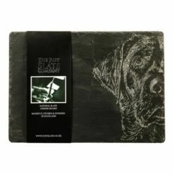The delightful slate cheese board has been handcrafted in Scotland and is engraved with a faithful labrador. A foam backing protects surfaces.