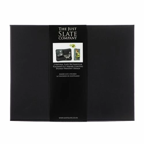 The Just Slate Company Pheasant Slate Coaster & Place Mat Set includes two place mats and two coasters.