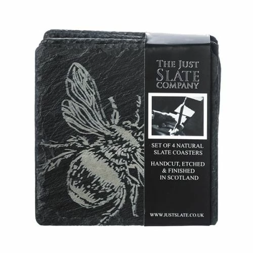 Beautifully handcrafted in Scotland, the Just Slate Company Set of 4 Bee Slate Coasters make a lovely table piece for your guests to set their drinks on. Each square slate coaster has been engraved with a stunning hand-illustrated engraving of a buzzing bee.