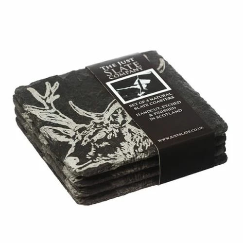 Beautifully handcrafted in Scotland, the Just Slate Company Set of 4 Country Animals Slate Coasters make a lovely table piece for your guests to set their drinks on. Each square slate coaster has been engraved with a stunning hand-illustrated engraving of a British country animal, including a highland cow, a stag, a hare and a pheasant.