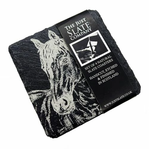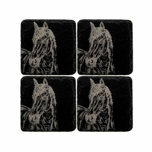 Beautifully handcrafted in Scotland, the Just Slate Company Set of 4 Horse Portrait Slate Coasters make a lovely table piece for your guests to set their drinks on. Each square slate coaster has been engraved with a stunning hand-illustrated engraving of a horses head.