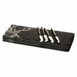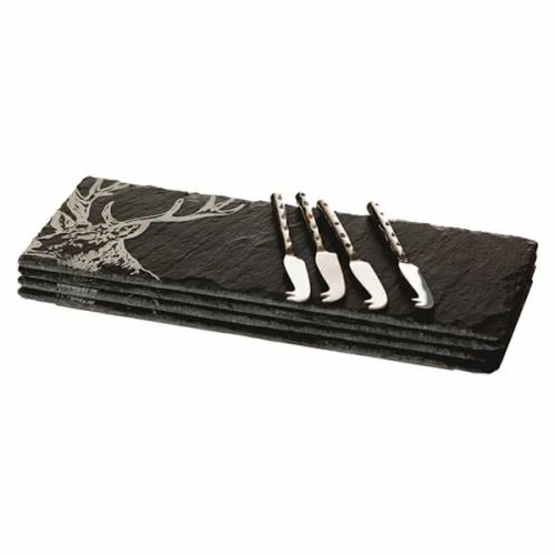 Combine the Just Slate Company Set of 4 Stag Mini Slate Cheese Board & Knife Sets with matching place mats and coasters for a coordinated look.