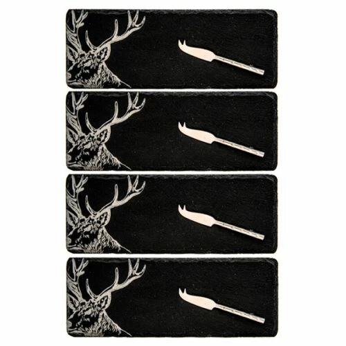 The Just Slate Company Set of 4 Stag Mini Slate Cheese Board & Knife Sets