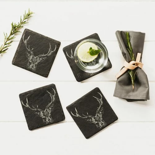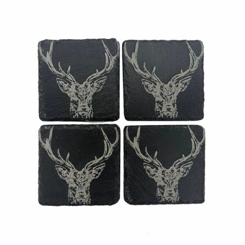 The Just Slate Company Set of 4 Stag Prince Slate Coasters
