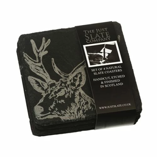 Beautifully handcrafted in Scotland, the Just Slate Company Set of 4 Stag Slate Coasters make a lovely table piece for your guests to set their drinks on. Each square slate coaster has been engraved with a stunning hand-illustrated engraving of a noble and majestic stag.