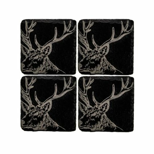 Combine the Just Slate Company Set of 4 Stag Slate Coasters with the matching engraved stag place mats and table runner for a coordinated look.