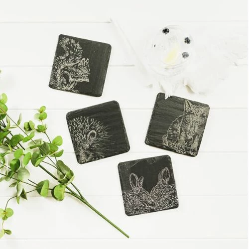 The Just Slate Company Set of 4 Woodland Friends Slate Coasters