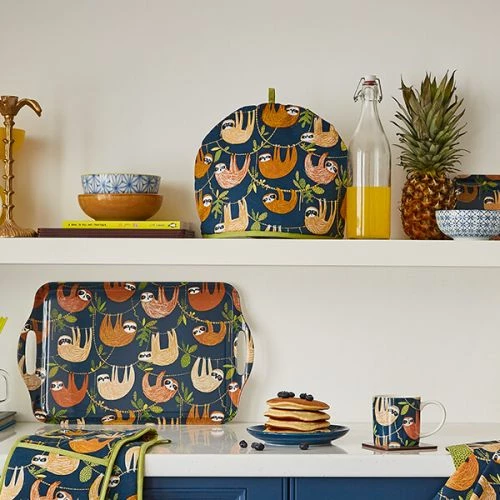 Features adorably illustrated sloths doing what they do best – hanging around!
